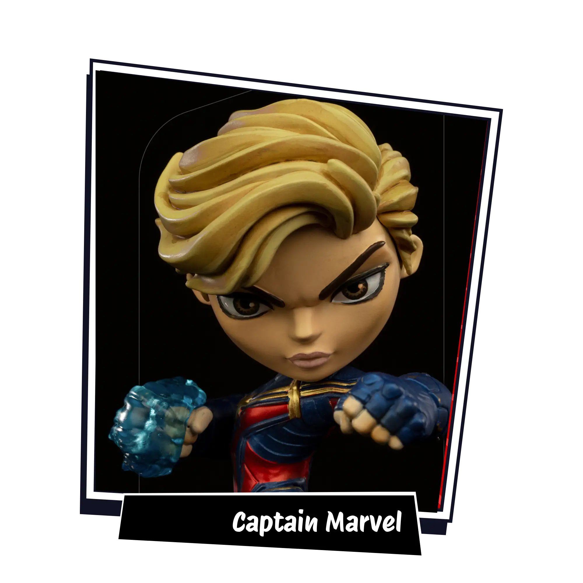 Carol’s MiniCo sculpt captures her mid-stride, fists glowing with cosmic energy. You can practically feel the photon charge building before she launches skyward.